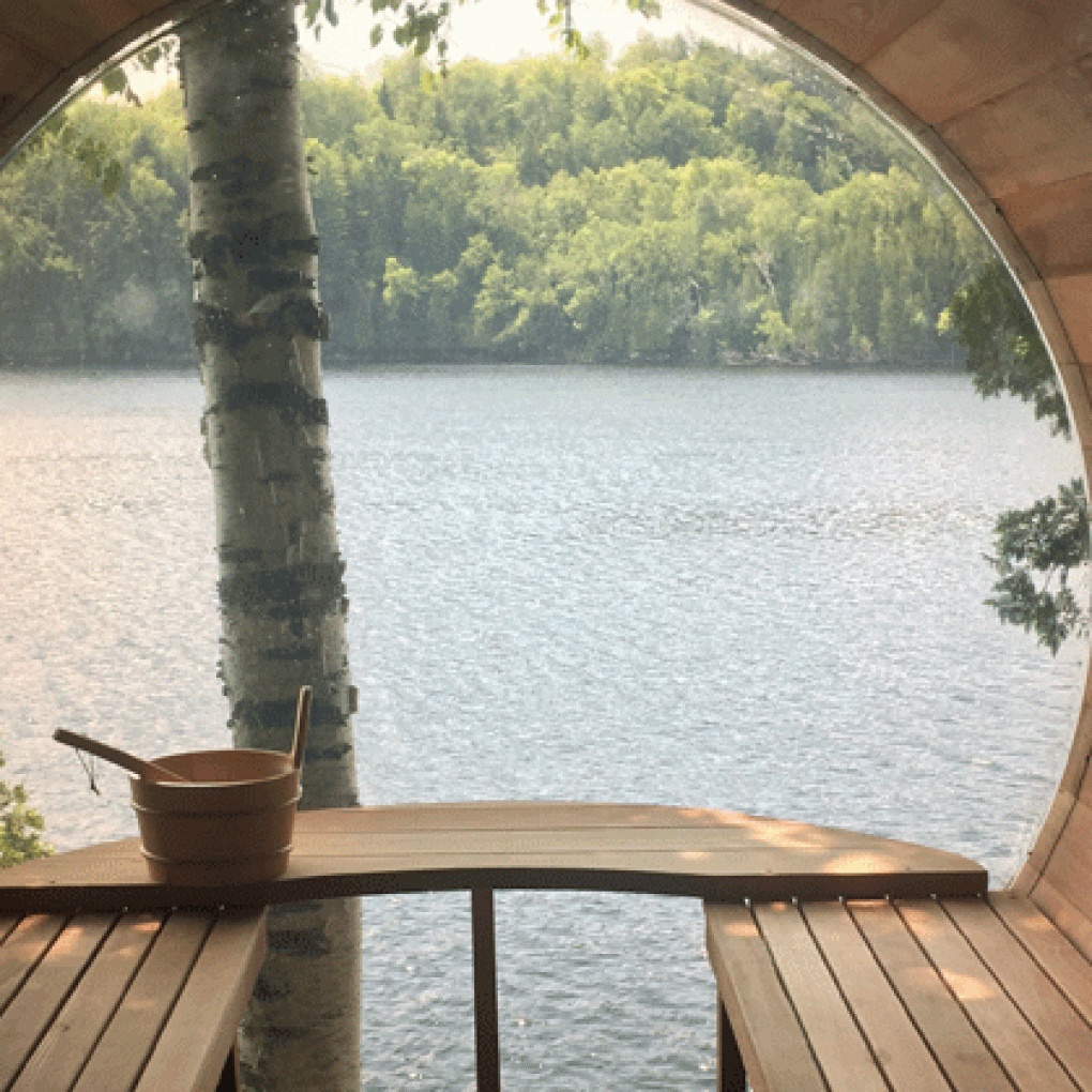 Our Western Red Cedar Panoramic barrel saunas allow for a beautiful view and have 1 1/2″ thick walls for a long natural insulation. The barrel design give you a much smaller heating area than any rectangular sauna with plenty of room for bathers. With up to 3 different bench options to choose from friends and family can comfortably enjoy a relaxing time in the sauna.